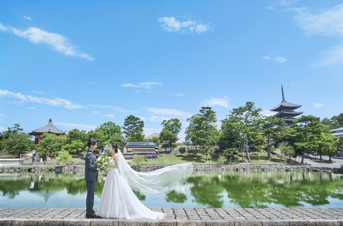 近鉄奈良駅から徒歩5分。五重塔を望む奈良らしいロケーションの中で、心に残るウエディングを。