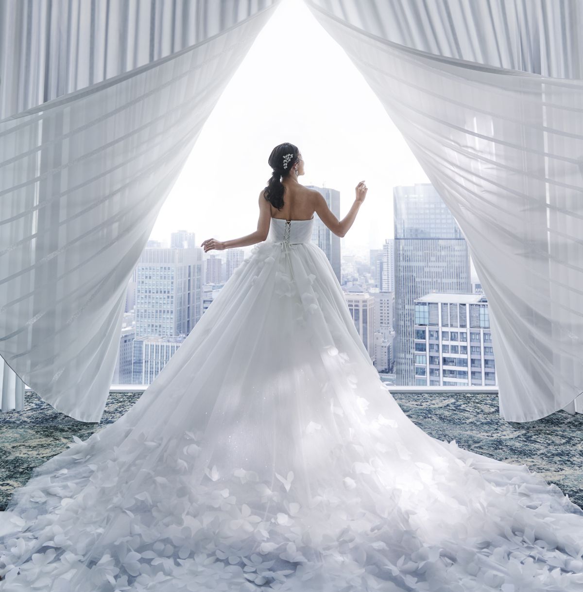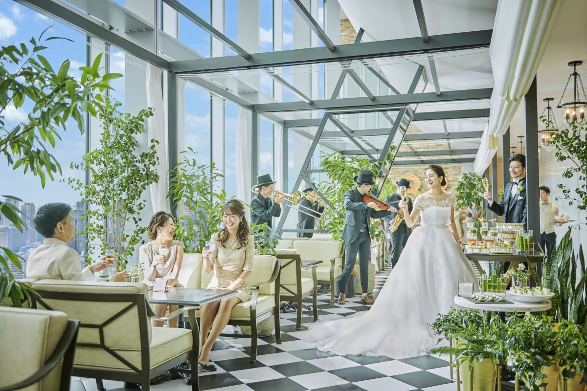 地上160mからの絶景が広がる、スカイビューウエディング。陽光差し込むチャペルと上質な貸切空間で、特別感あふれる一日を。空と光に包まれる、開放的なウエディングステージです。
