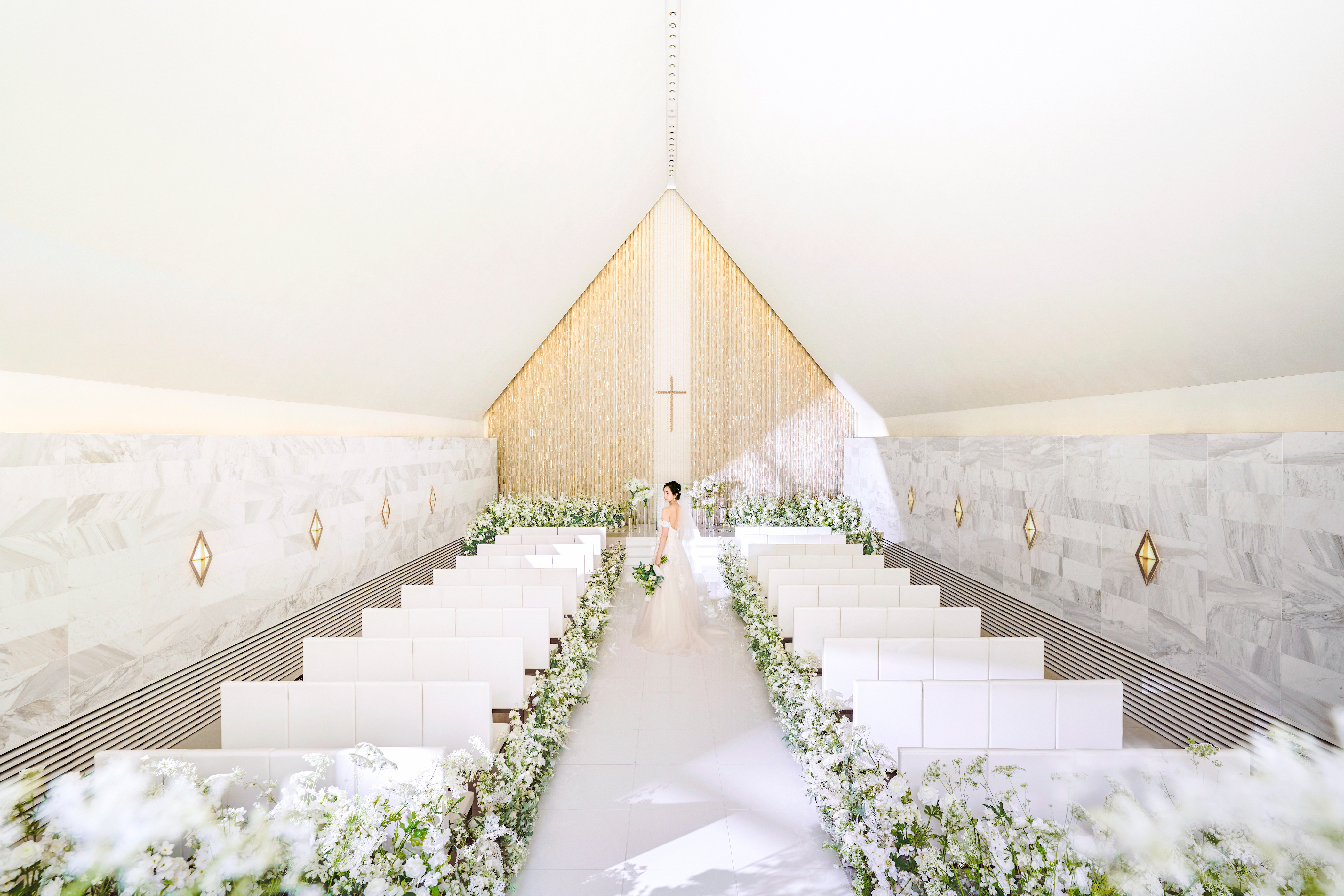 誓いのステージにふさわしいピュアホワイトの清楚な空間