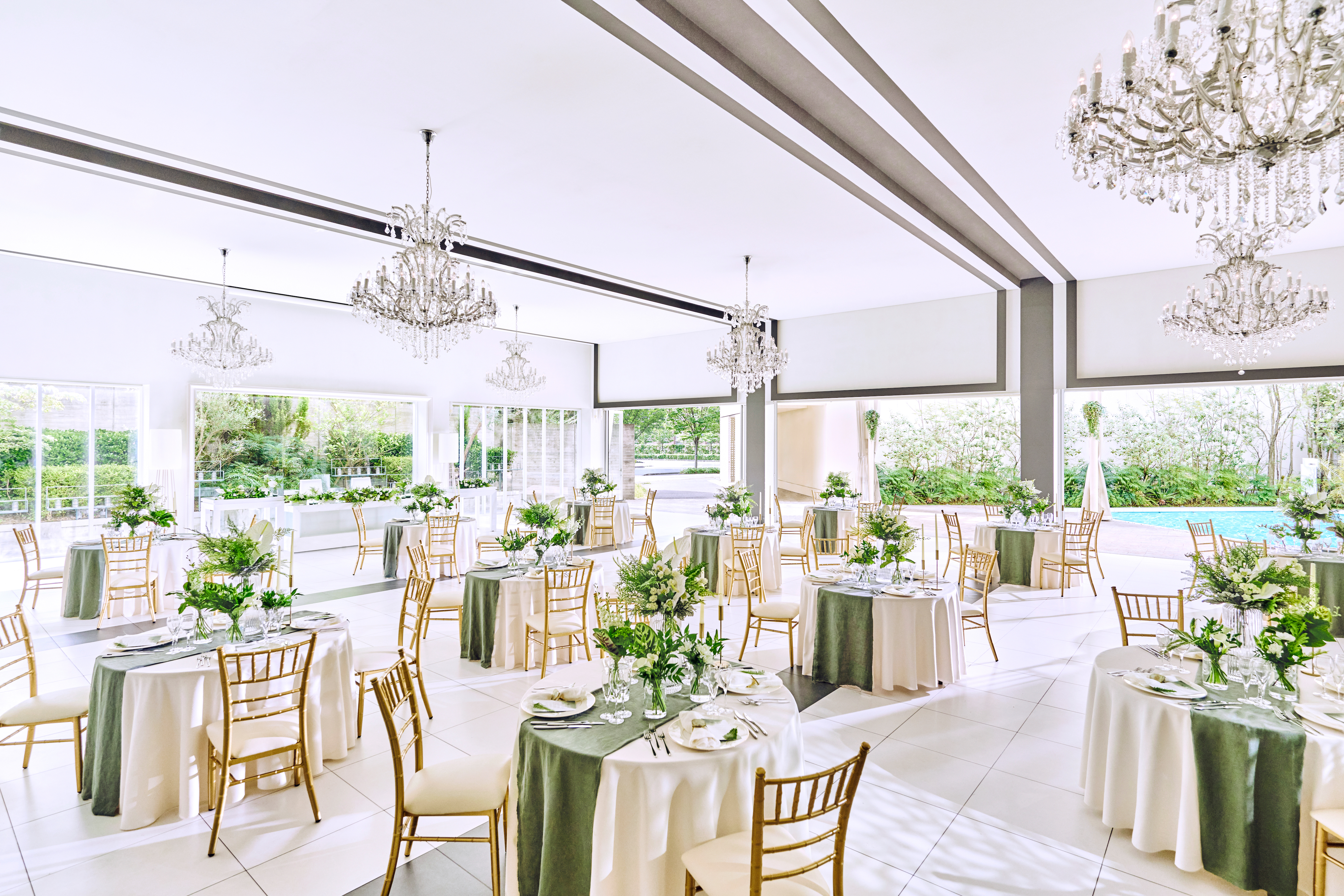 【1200坪の貸切邸宅で自由で楽しいウェディング】白亜のチャペル、自然光たっぷりのパーティ会場に加え、全天候型ガーデンテラス・プール・フォトブースなど、ふたりとゲストが楽しく過ごせる空間が広ります。