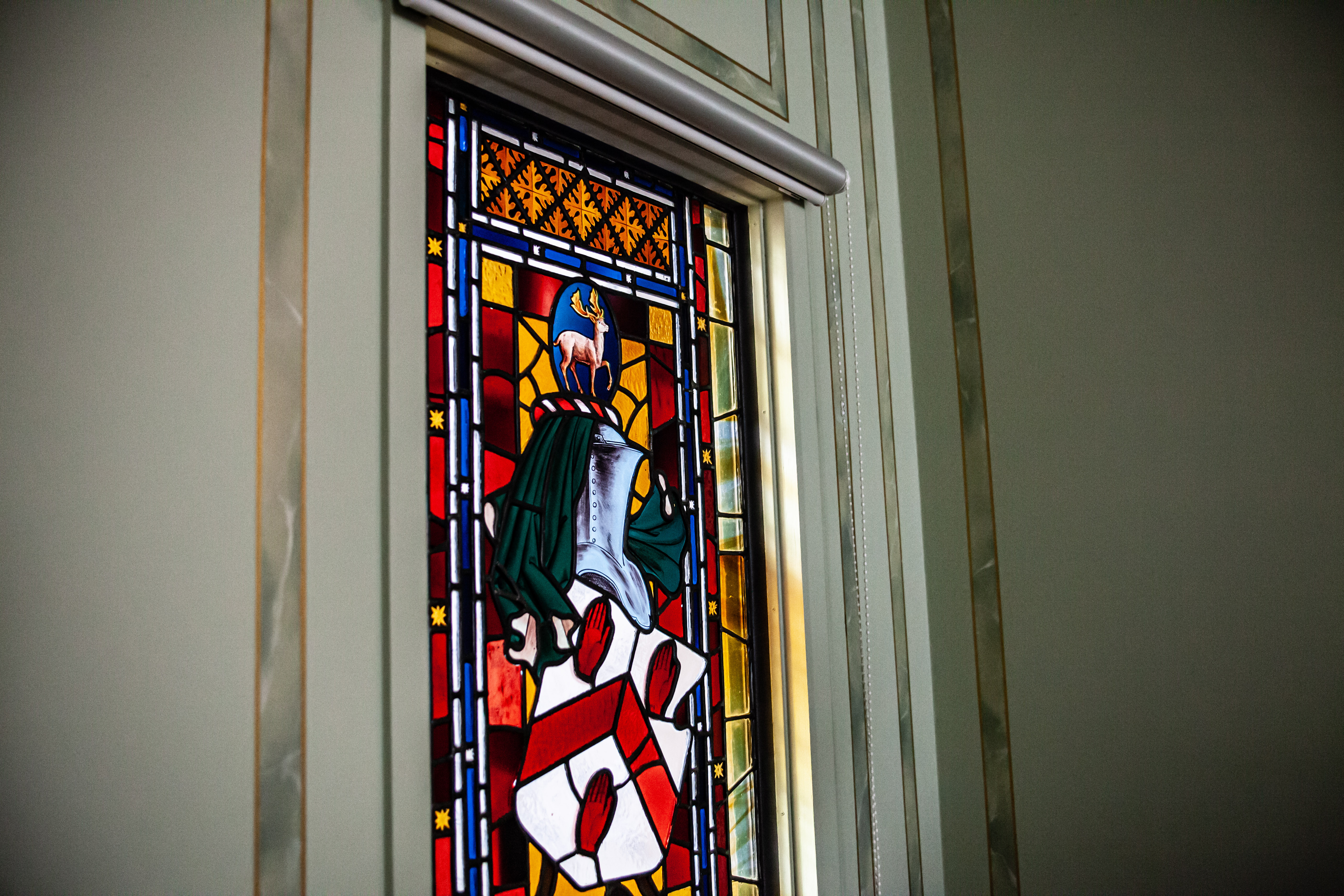 中世ヨーロッパの格式高い教会をイメージしたチャペルのステンドグラスから差し込む彩り豊かな自然光が優しく包みます。チャペルに備え付けられたインテリアは、椅子ひとつとっても、全てビンテージで味のあるものばかり。