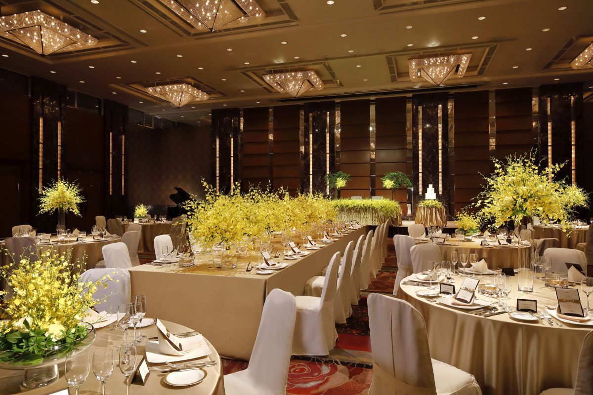 3フロア吹き抜けの開放的なロビー空間にはドレスが映える大階段と天の川のシャンデリアがゲストを迎えます。日本橋らしい粋なサービスと世界のVIPや国賓をもてなす美食で最良の一日をお過ごしください。