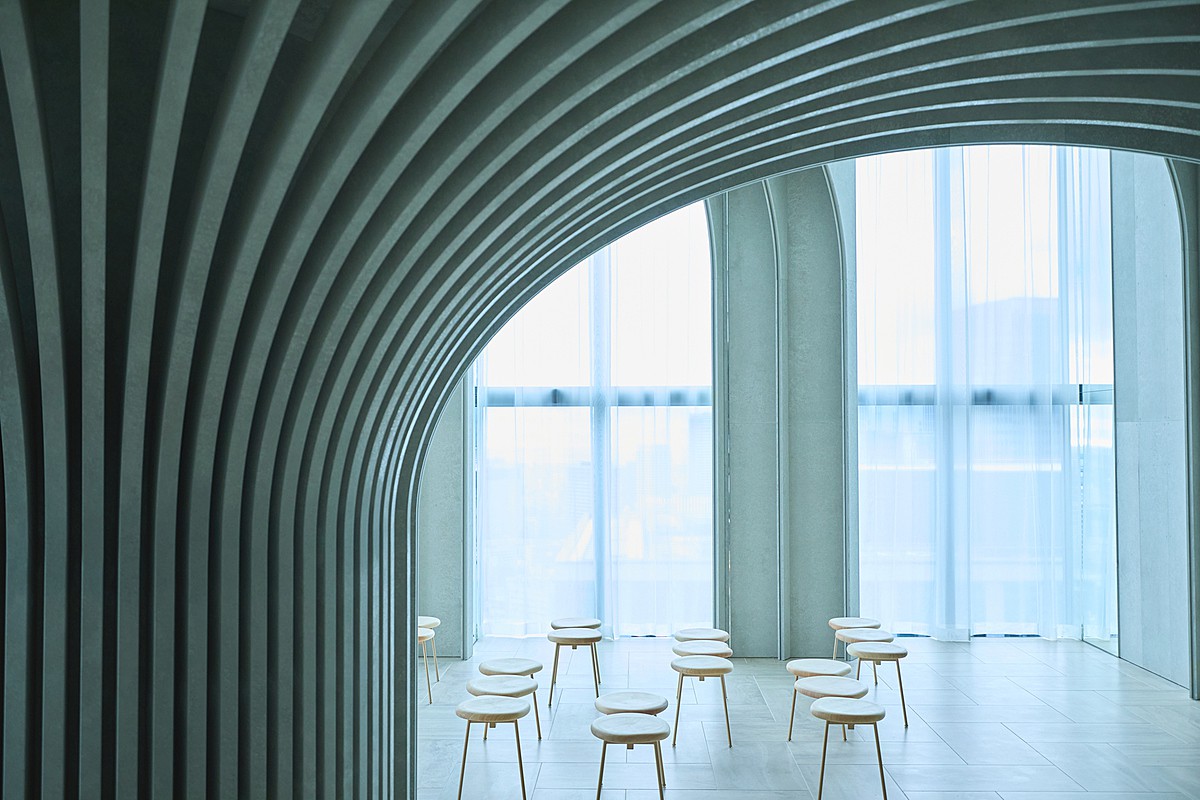 2025年9月、大阪・淀屋橋に誕生する新会場。地上150mの高層階からの絶景と、海外の美術館を思わせるアートな空間が魅力。自然光が織りなす光と影の演出が、特別な一日を一層引き立てます。
