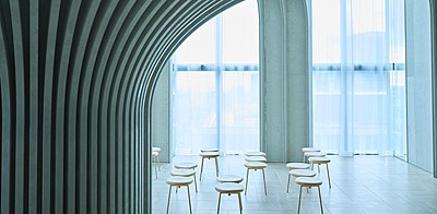 特徴的な建築が美しい空間は、ふたりのスタイルに合わせ自由な挙式が叶います。ゲストにただ参列してもらうのではなく、ふたりの世界を感じられる時間が過ごせます。第六感が震え、込み上げる感動を共有してください。