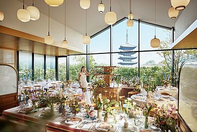 京都の風情漂う東山で味わう、パリのエスプリ香るフレンチ。自然を感じる上品な空間で、料理と会話をゆったり楽しむ大人のウエディングにぴったりです。