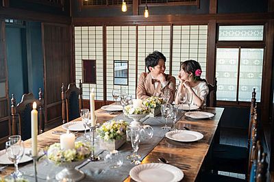 元々下駄屋であった築90年以上の古民家を、有名デザイナーによって改装したレストランが会場です。また、当店自慢の四季折々の風景が楽しめる庭園には子孫繁栄でも知られる樹齢200年の柏の木を保有しています。