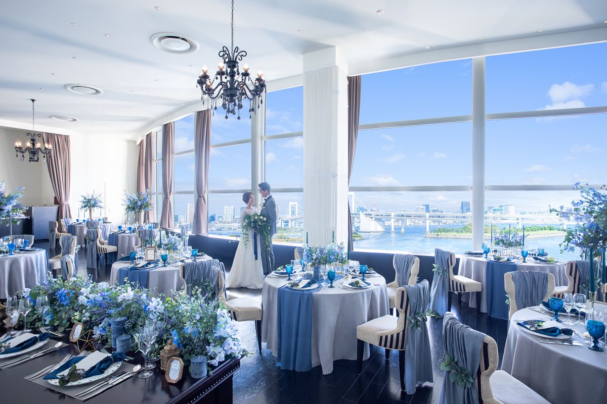 全ての披露宴会場から、遮るもののない東京湾の景色を楽しめます。専用テラスが隣接しているため、室内と外を自由に行き来できるのが特徴。青い海から美しい夜景まで、景色そのものがゲストへのおもてなしになります。