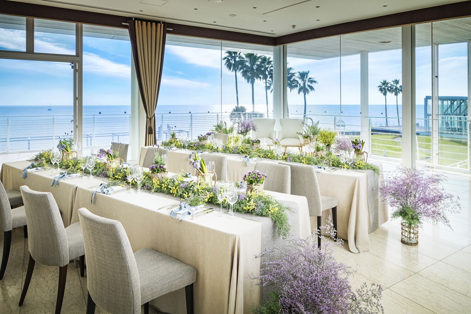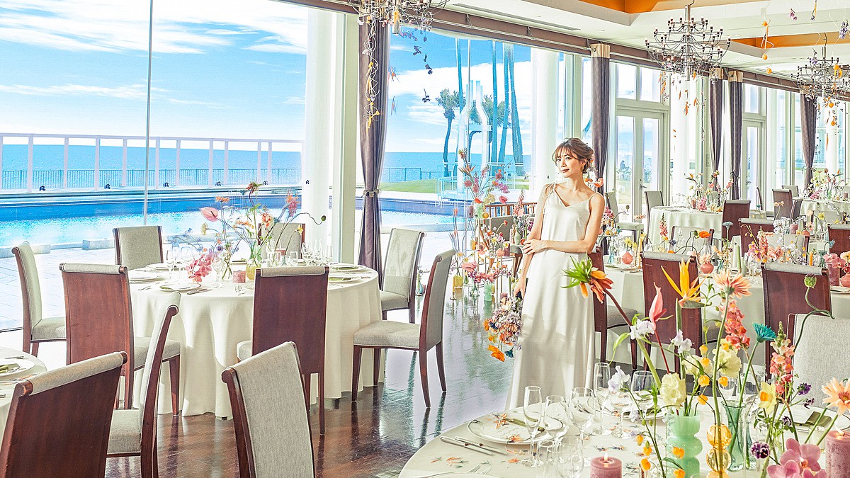 どこまでも澄み渡った空に煌めく水平線が広がり、都会では決して実現することのできない本物のリゾート空間です。開放的で抜群のロケーションを最大限に活かしたリゾート地ならではの演出も人気。