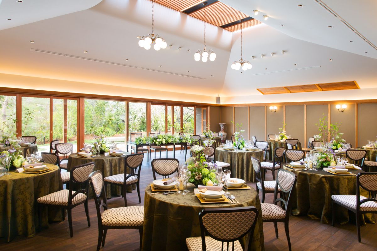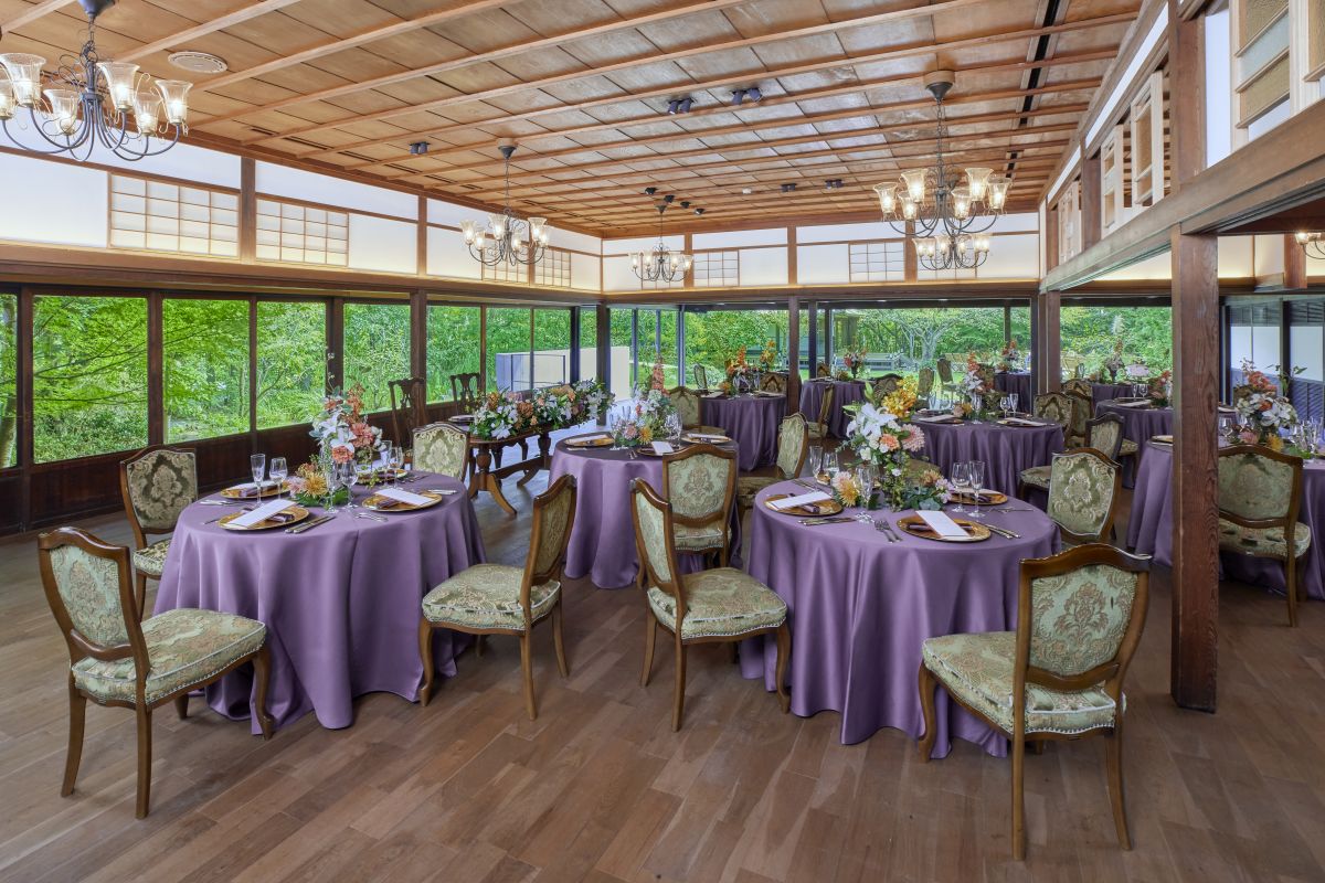 由緒ある邸宅、登録有形文化財に指定されている「本館 樫野邸」、江戸時代の武家屋敷をリノベーションしたクラシカルな「別邸 風雅庭」、隠れ家のような上質な空間「観月邸 梨宮」。各会場に四季折々の草花が薫る庭園がありプライベート感ある心くばりが行き届いたパーティーを実現します。