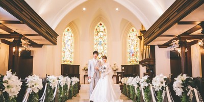 大理石のヴァージンロードに世界的工房が手がけた優美で繊細なステンドグラス。パイプオルガンが奏でる迫力のある音色と聖歌隊の美しい歌声がおふたりとゲスト包みます。