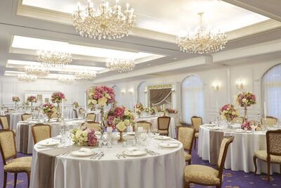 ヨーロッパの宮殿をイメージした室内装飾にスワロフスキー社製のクリスタルシャンデリア。クラシカルで品格ある雰囲気を創り上げています。