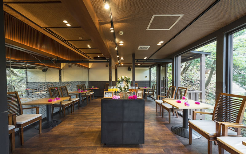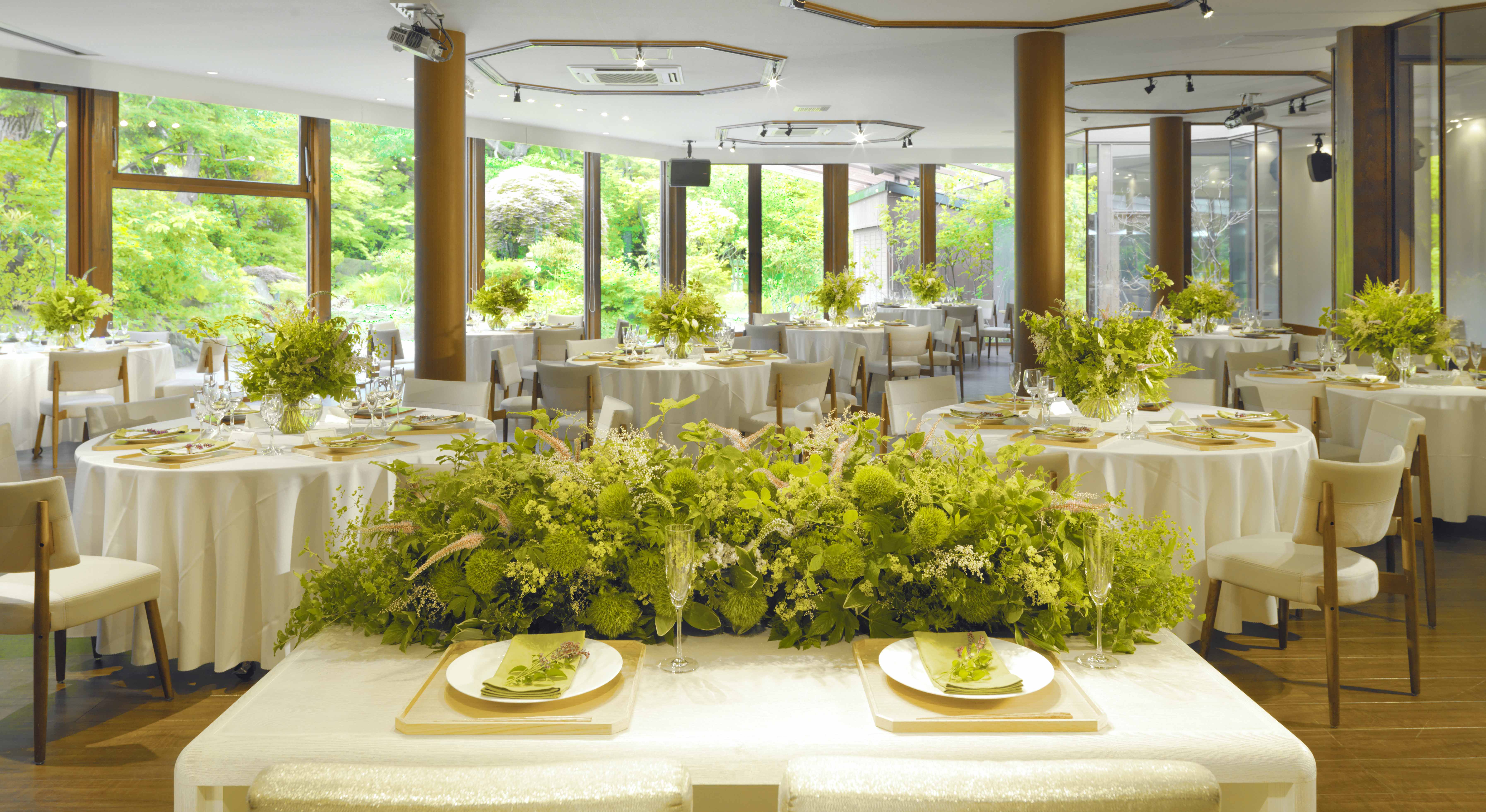 四季ごとに異なった表情を愉しめる庭園が視界に大きく広がるメイン会場