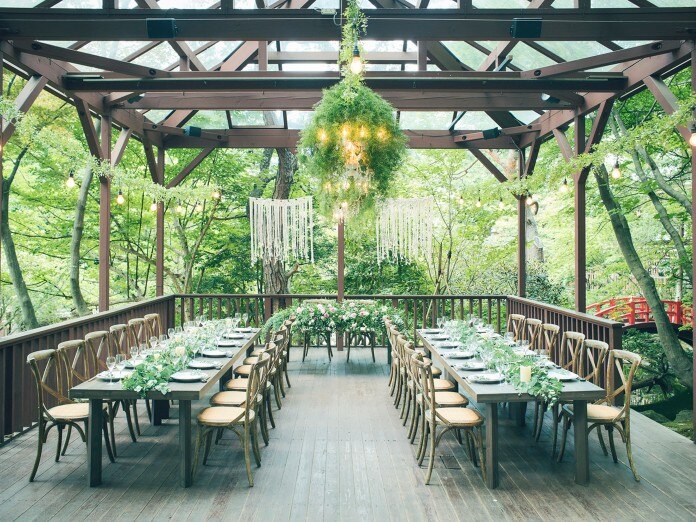広大な日本庭園に囲まれた和モダンな式場。四季折々の自然美が彩る空間で、伝統的な趣と現代的なデザインが融合した特別なひとときをお届けします。