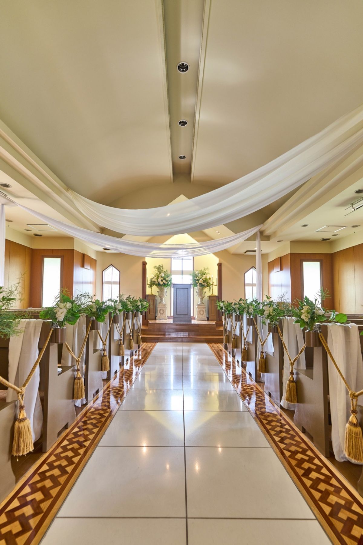 自然光が差し込む、あたたかな雰囲気のチャペル