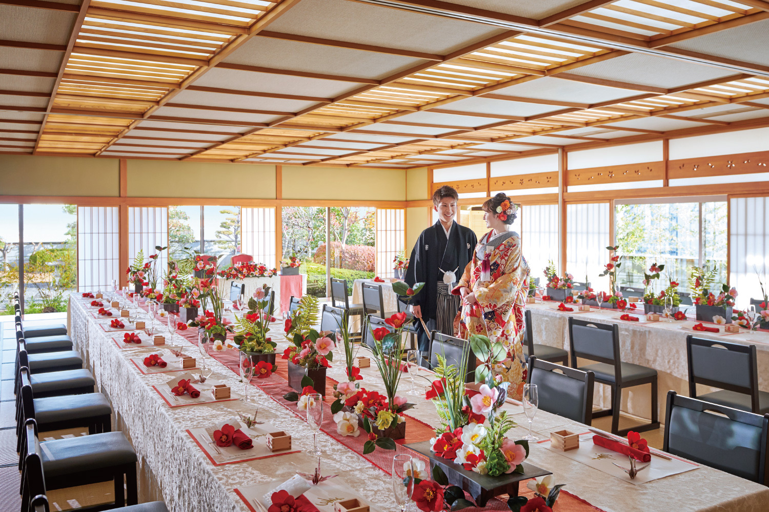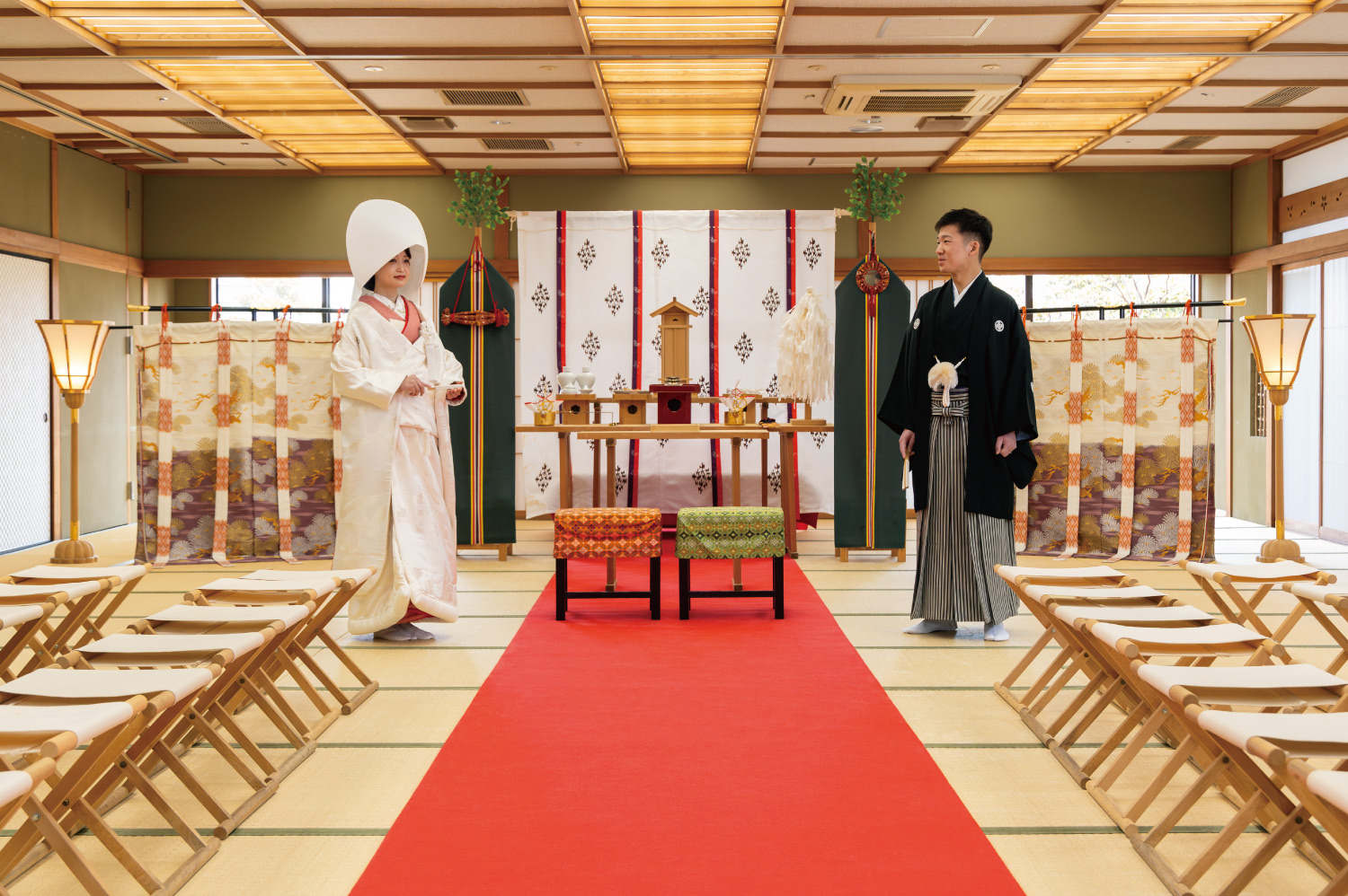 とことん和にこだわる「神前式×畳の大広間での祝宴」や、トレンドを取り入れた「和の人前式×モダン空間でのパーティー」などお二人のお好みに合わせて一日をコーディネートできます。