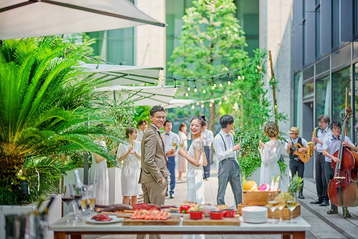 新郎新婦お衣裳1着づつ・テラスで大人気のJAZZの生演奏・ウェルカムドリンク・ブーケなどをプレゼント