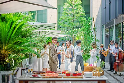 ◇テラスでの人気演出「JAZZの生演奏」◇オリジナルのウェルカムカクテル◇デザートブッフェ◇ブーケ◇挙式料全額をプレゼント
