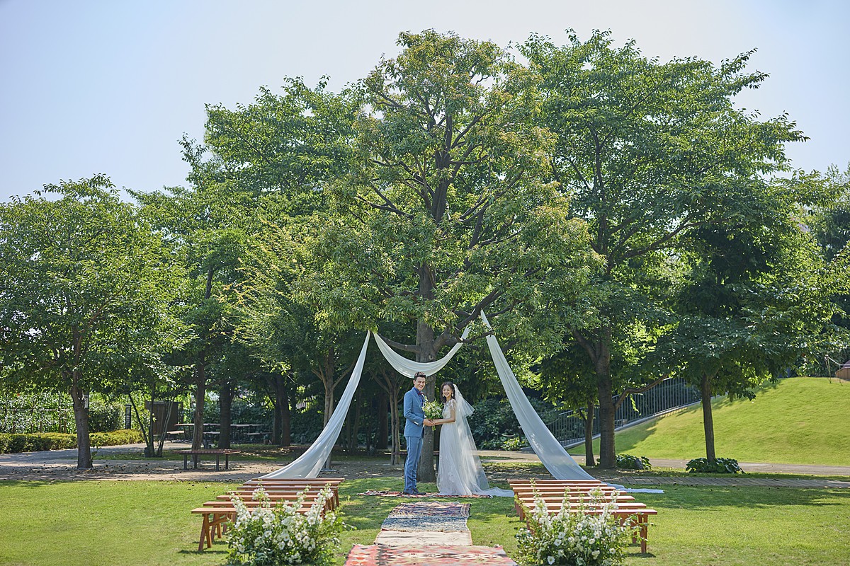 青空の下で叶う緑豊かなガーデンチャペルor全天候型館内チャペル