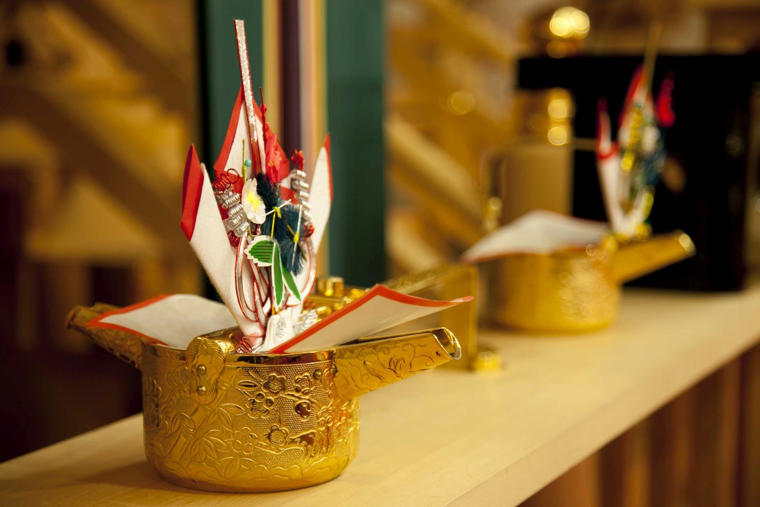 凛とした空気の中で執り行なわれる厳かな神前式は、