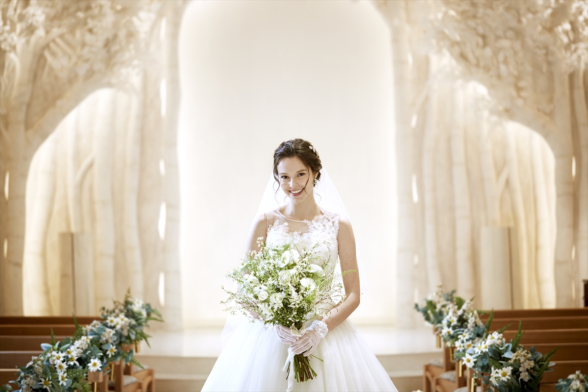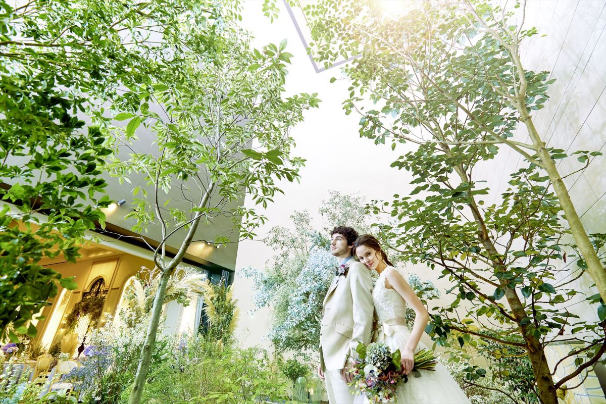 木漏れ日がバージンロードに差し込む光の演出は幻想的で、誓いのシーンがより印象的に。まるで小鳥のさえずりが聞こえてきそうな心地よい空間です。
