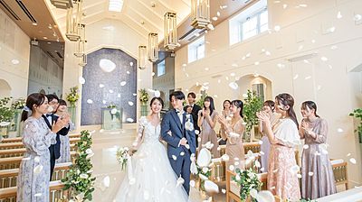 自然光と水が煌めくチャペルで 感動的な誓いを