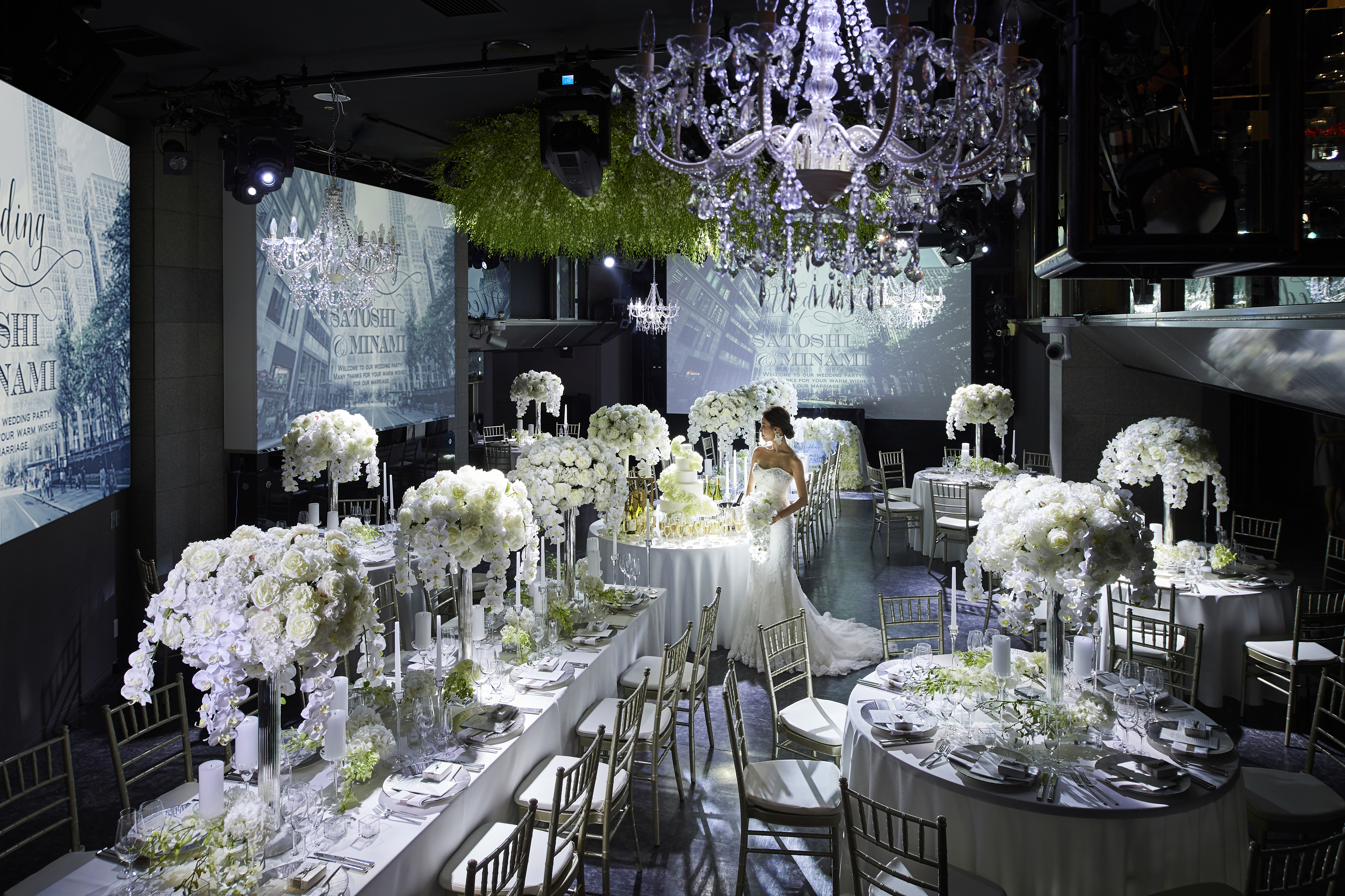 テーマに合った映像を背景に、大切なゲストに囲まれて感動の誓いを