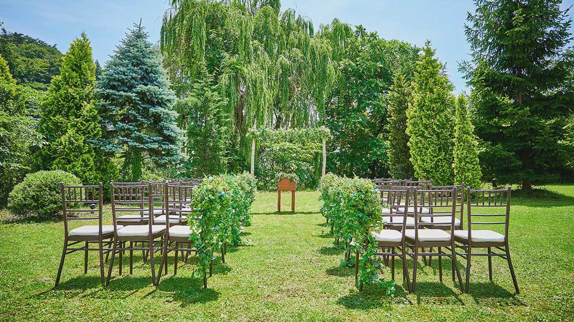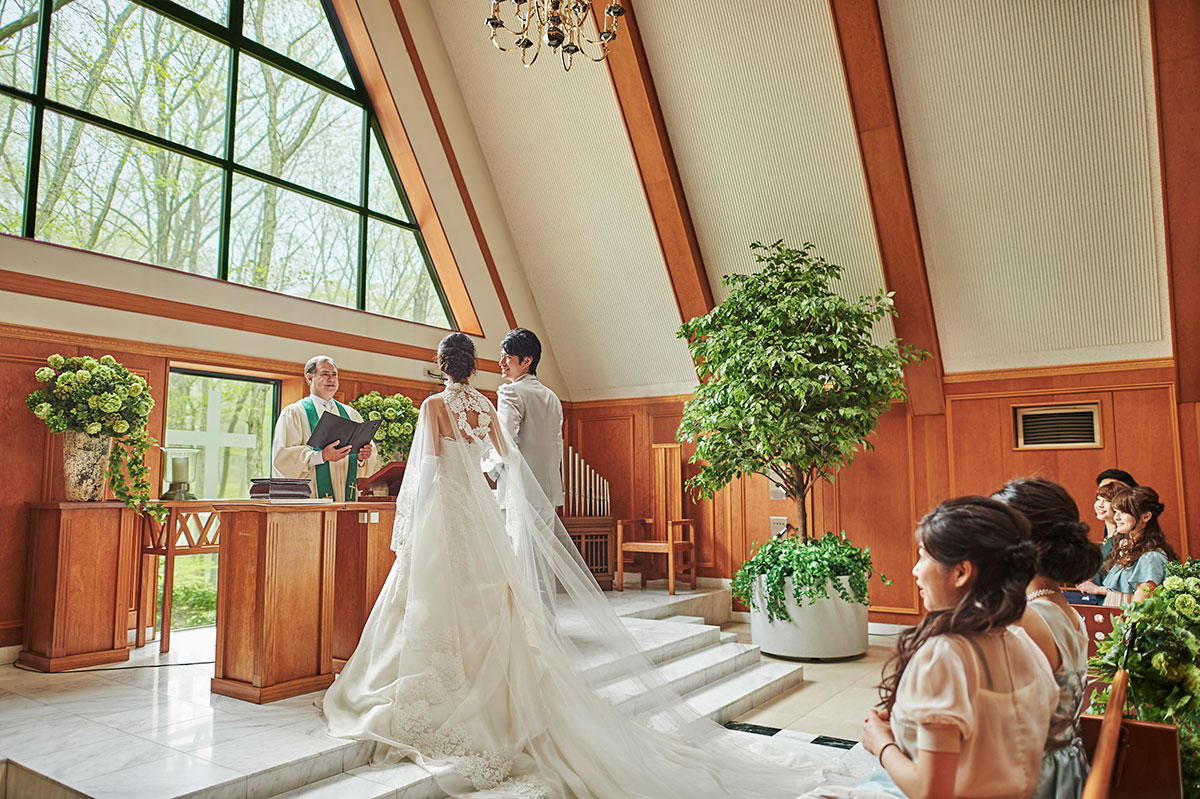 映画のワンシーンに出てくるような三角屋根の外観が愛らしい独立型チャペル。那須の自然と大切な人たちに囲まれて誓い合うこの場所は、生涯足を運べるホテルだからこそ、訪れるたびにその感動を思い出させてくれることでしょう。