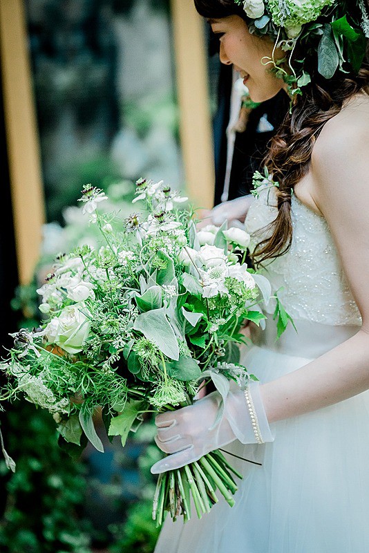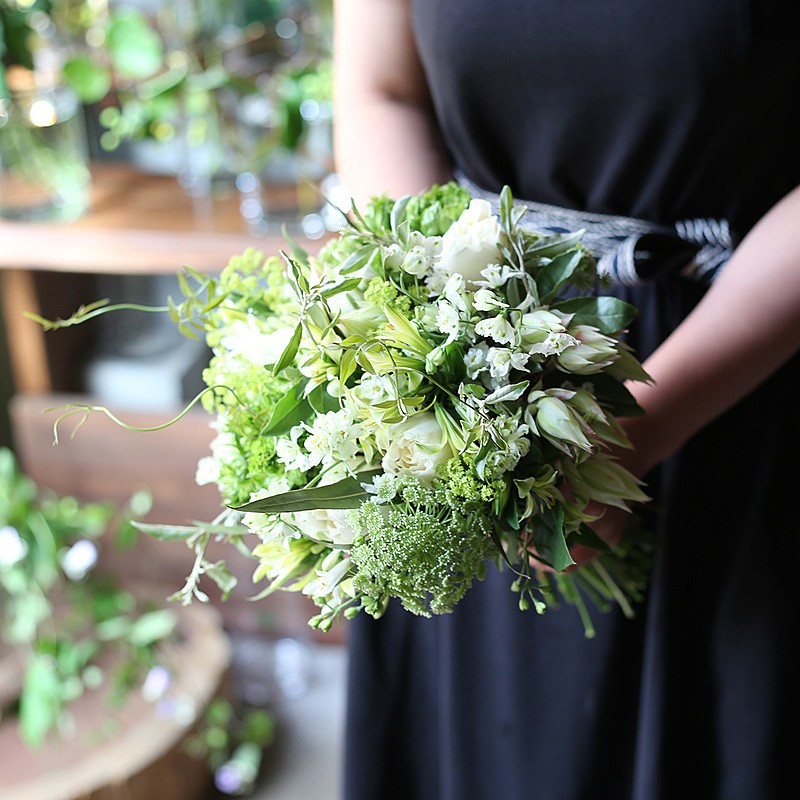 グリーンや花の造形美を最大限に生かしたアレンジが最大の特徴です。瑞々しさが際立つクリーンな空間設計から、ドライフラワーやスワッグなどをあしらったアンティークテイストの装飾まで幅広い世界観を演出します。