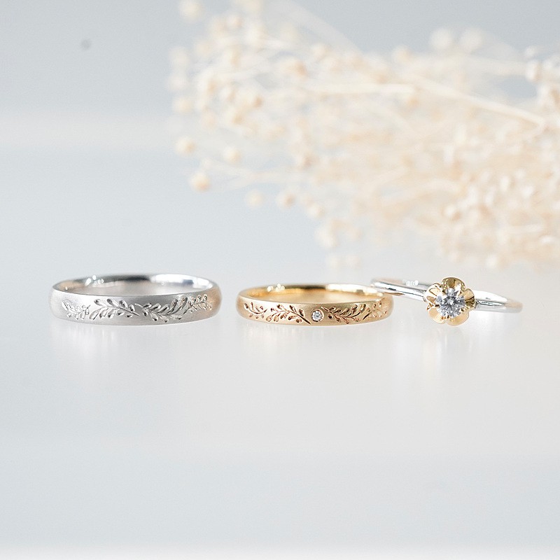 デザイナーと指輪職人の夫婦が自身の結婚を機に立ち上げたこのアトリエでは、一組一組ふたりの物語に合わせた特別なリングを提案。研ぎ澄まされた感性と確かな品質で、人と被りづらいふたりらしい世界に一つのリングが出来上がる。ここで一緒に過ごした時間も大切な思い出の一つに。