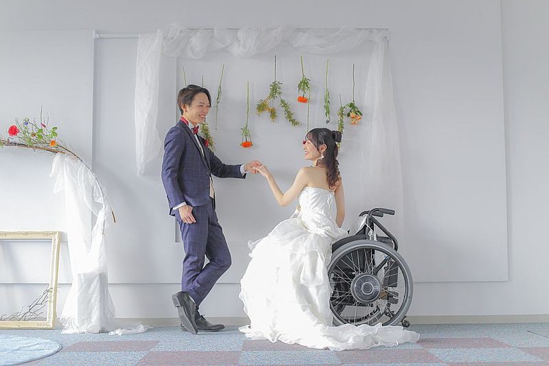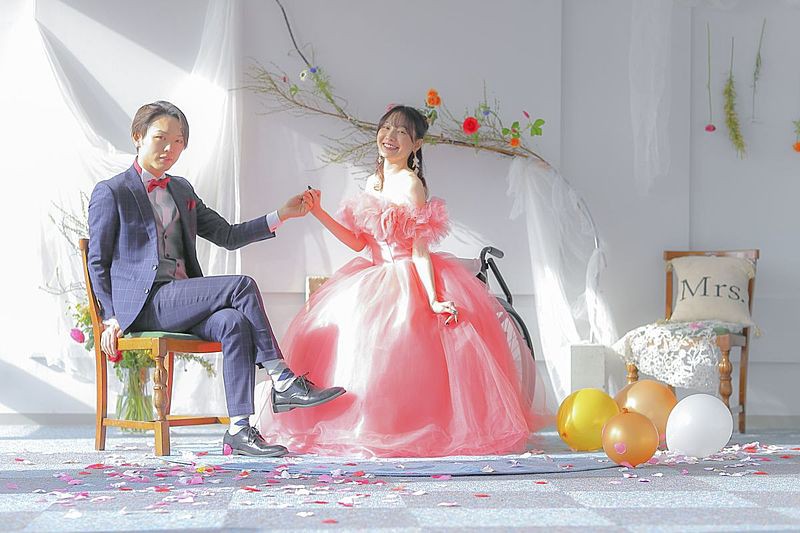 車椅子の花嫁・花婿のために特別に仕立てたウェディングドレス、タキシード、和装を“レンタル“できるサロンです。バリアフリー結婚式やフォトウェディングを叶えるご相談スペースをご用意しています。バリアフリーの店内では、花々に囲まれた「フラワーズカフェ」にて、心ときめく時間を過ごしながら、ゆったりとお打ち合わせいただけます。