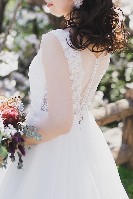 挙式や1.5次会でのロングトレーンのウェディングドレスや、 二次会・海外挙式などでも動きやすいドレスなど 幅広いラインナップを取り揃えています。 前撮りでのご利用も人気です。 ウェディングの枠にとらわれずセレクトしたヴィンテージのアクセサリーなど 個性あふれるアイテムもぜひご覧ください。